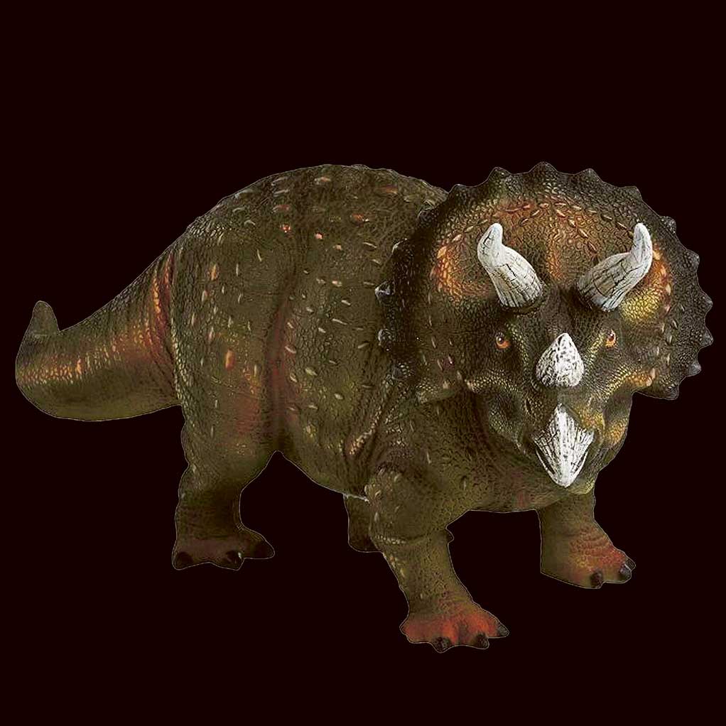 A highly detailed 3D model of a Triceratops dinosaur with distinct horns and frill, captured in a realistic pose.