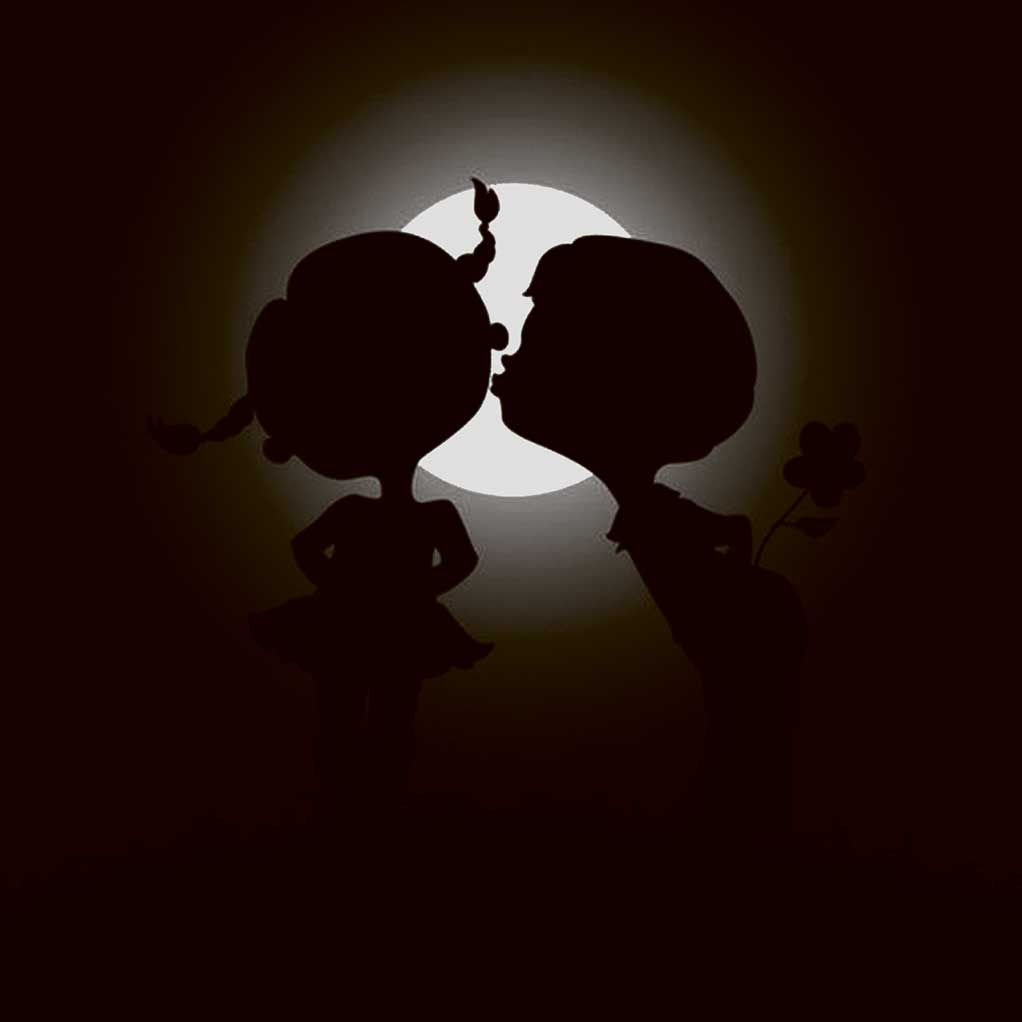 Romantic silhouette of a couple kissing under the moon, beautifully captured in an LED Box Frame to bring a touch of love and charm to your home decor.