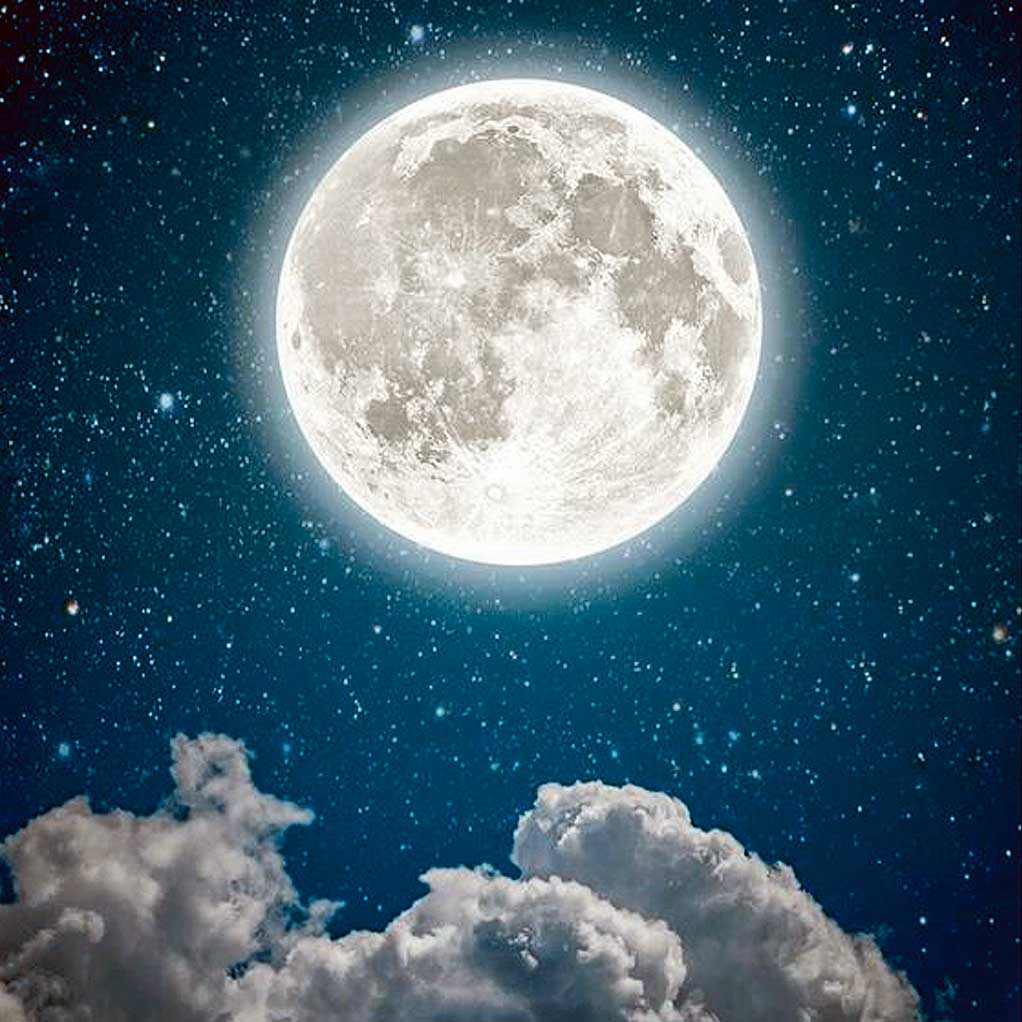 Full moon glowing brightly in a starry sky with soft clouds, perfect for LED Box Frame display.