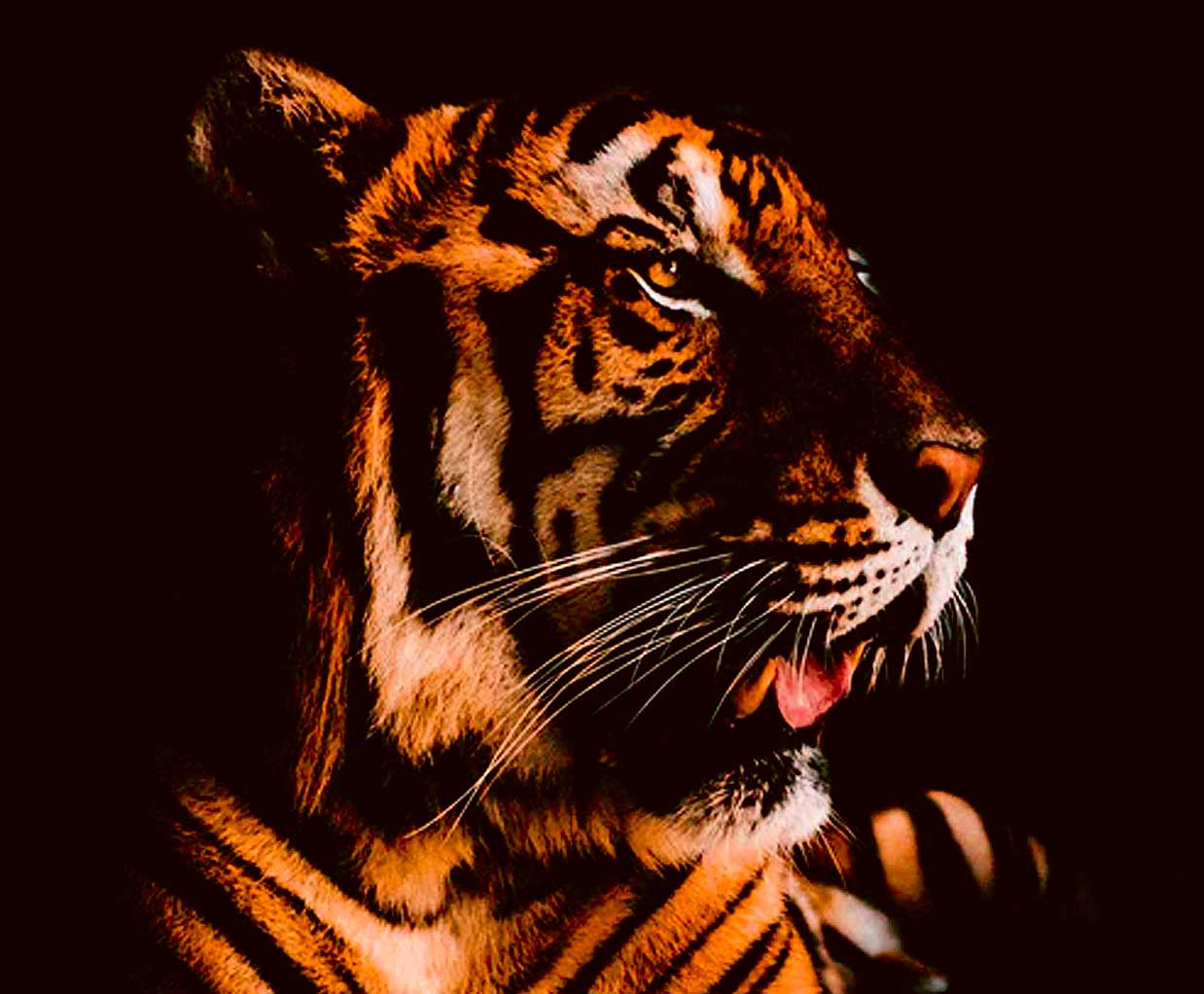 Close-up of a powerful tiger, captured in detail with its striking orange and black stripes, symbolizing strength and grace for a vibrant LED Box Frame display.