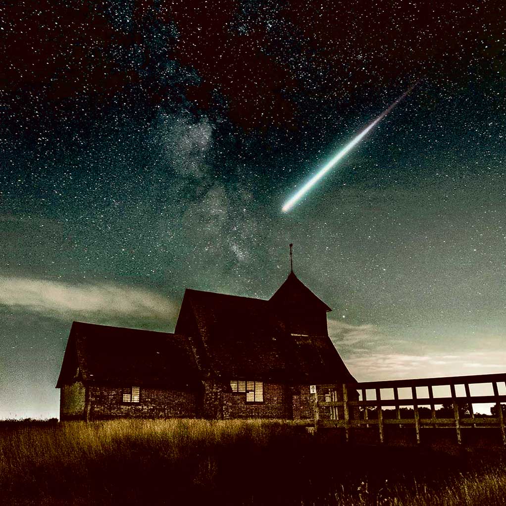 Starry night sky with a shooting star above a house, perfect for LED Box Frame displays and cosmic-inspired decor.