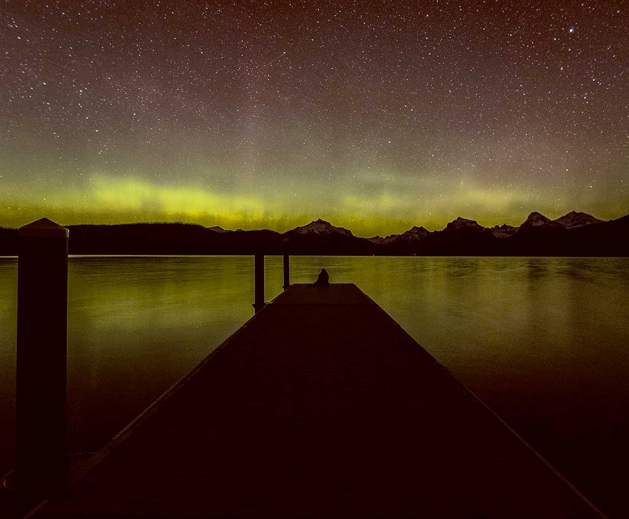 Stunning Northern Lights over a dock at night, perfect for LED Box Frame displays and nature-themed home decor.