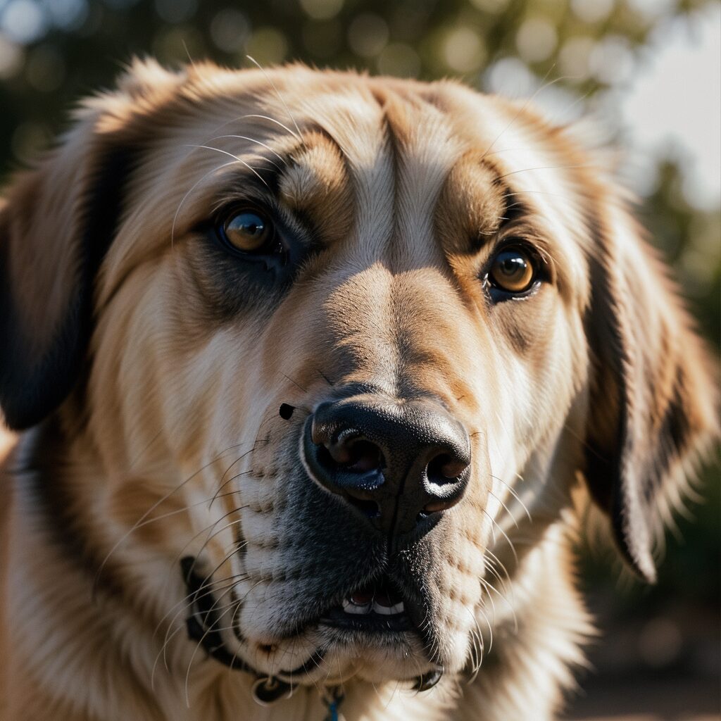 Close-up portrait of an Anatolian Shepherd dog with expressive eyes, displayed in an elegant LED Box Frame.
